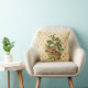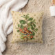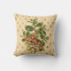 Hübsches Werftkissen bietet eine Vintage botanische Abbildung von Pilzen, Blume und einer Vielzahl von Blätter auf einem cremigen pfirsichfarbenen und goldenen Harlequin Hintergrund.