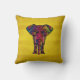 Eine Elefantenillustrierung mit hellen und kühnen Farben mit dekorativem Blumenmuster und Mandela-Stil. Das Hintergrundmuster ist ein gelb gestreiftes Design.