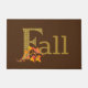 Hübscher Herbst / Herbst-Design mit Hauptstadt Buchstaben "F" mit goldbrauner/brauner karierter Füllung und einem Overlay wasserfarborangefarbener Herbstlaube auf dunkelbraunem Hintergrund