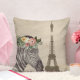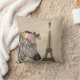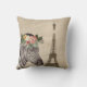 Stilvolles Kissen mit Vintagem sepia-tint Hintergrund-Foto des Eiffelturms mit einem wunderschönen Aquarellportrait mit Blumenkronen