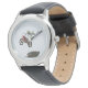 Kinder Edelstahluhr mit schwarzem Lederarmband