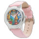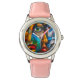 Kinderuhr aus Edelstahl mit rosa Lederarmband