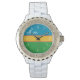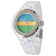 Eine wunderbare Damenuhr mit weißem Armband und grün-weiß-kariertem Ziffernblatt. Trägt sich ganz fabelhaft. Exzellenter Druck, sehr klare Farben. Schönes Design.