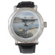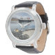 Uhr, Vintage Männeruhr mit schwarzem Lederarmband