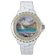 Weiße Damen Email Strassuhr