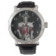 Uhr, Vintage Männeruhr mit schwarzem Lederarmband