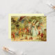Vintage Farbdarstellung von Feen und Waldkreaturen, die durch den Wald spazieren. Kleine Feen bläst Trompete aus der Blume, während er vor dem Fürst und Prinzessin-Feenpaar spaziert.