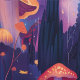 Fairycore Große Orangenhocker im Lila Wald Tapete