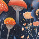 Fairycore Orange Pilze in einem blauen Wald Tapete