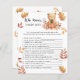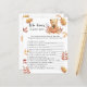 Feiern Sie mit diesem Herbst Teddy Bären thematisch Baby Dusche Party! Der niedliche Teddybär mit einem Herbstkürbis in seinen Pfoten sitzt im Herbstwald. Auf der Rückseite der Karte befinden sich Herbstblätter. Matching-Elemente verfügbar.