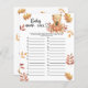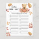 Feiern Sie mit diesem Herbst Teddy Bären thematisch Baby Dusche Party! Der niedliche Teddybär mit einem Herbstkürbis in seinen Pfoten sitzt im Herbstwald. Auf der Rückseite der Karte befinden sich Herbstblätter.
