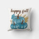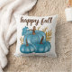 Fall Kürbis werfen Kissen! Das moderne Schriftzeichen-Zitat sagt "glücklicher Fall". Drei trendige, farbenfrohe blaue Kürbis mit Herbstblättern. Weich weißer Hintergrund. Sehr gemütlich!