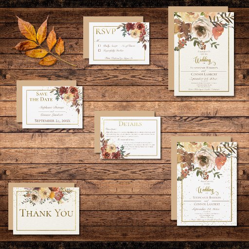 Fall Floral Bouquet w/Gold Wedding Suite CardsDesignt von Kathe Santillo