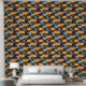 Orangefarbene Kürbis in farbenprächtiges Blumenpflaster auf dunkelblauem Hintergrund.