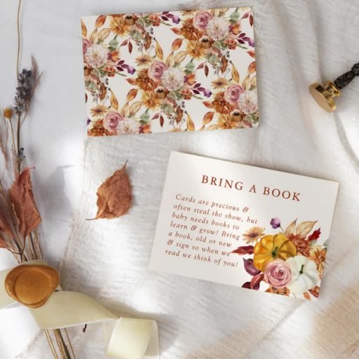 Dieses Babyduschdesign ist in prächtigen, tiefen Farben mit Kürbissen blumig.
