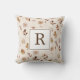 Fall Foliage Decoration Monogram Kissen Kissen. Dieses elegante und rustikale mit Monogramm Kissen besticht durch handbemalte Aquarelltöne in Orange und Terrakotta, cremefarbene und beige Dahlien sowie wunderschöne rostfarbene Rose auf hellbraunem Hintergrund, die sich perfekt für die Herbstdekoration eignen. Die Rückseite des Kissens hat das gleiche Blatt- und Blumenmuster ohne Monogramm. Dieses Design ist Teil der Herbst Romance Kollektion, die durch einen Klick auf den obigen Sammlungs-Link angezeigt werden kann.