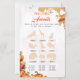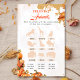 Lassen Sie sich von dieser faszinierenden Spielkarte zum Thema "Schwangere Tiere" verzaubern, die sich perfekt eignet, um Ihrer Babydusche eine pädagogische Drehung hinzuzufügen! Diese Spielkarte mit einem schönen Aquarell-Design aus Kürbissen und zarten Herbstblättern mit subtilen goldenen Fesseln fügt sich perfekt in Ihre saisonale Dekoration ein. Genießen Sie die Kombination verschiedener Tiere mit der durchschnittlichen Schwangerschaftsdauer, belebten Diskussionen und einem lustigen Wettbewerb. Es ist ein fantastischer Eisbrecher und eine unvergessliche Aktivität für alle Teilnehmer. Einfache Integration von speziellen Eventdetails oder kundenspezifischen Anleitungen, um dieses Spiel einzigartig zu machen. Ideal für Herbstduschen, rustikale Ansammlungen oder inspirierte Erntefeiern, um eine angenehme und aufschlussreiche Zeit zu gewährleisten.