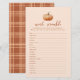 Bringen Sie Lächeln und Giggles zu Ihrem Herbst Babydusche mit diesem schönen Fall Kariert A Little Pumpkin Word Scramble Game! Dieses Kürbiswortschmelzen ist ein Hit bei jedem Herbst Baby-Feier! Behalt deinen Gästen bei der Entschlüsselung von Babywörtern wie Windeln, Decken und Rattle auf ihre Kosten. Das einfache, aber herausfordernde Gameplay ermuntert alle, zusammenzuarbeiten, Gespräche zu führen und Ihre Gäste naher zu bringen. Egal ob Sie eine Dusche für Paare oder eine Damensoiree beherbergen, dieses Spiel ist für alle ein Spaß. Die festliche karierte Kulisse mit der süßen Kürbisgrafik trägt dazu bei, die Stimmung für Ihr Herbstgebäck Set. Jede Mama-to-be wird von der Nachdenklichkeit eines Spiels berührt, bei dem es nur um das erwartete Freudenbündel geht. Machen Sie den Mama-to-be-Tag ganz besonders mit diesem Spiel, das niedlich ist, Spaß macht und fantastisch abfällt!
