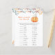 "Ein kleiner Kürbis ist unterwegs. Feiern Sie mit diesem Baby Cartoon Kürbis Thema für Baby Dusche Party! Wasserfarbener niedlicher Cartoon Kawaii Kürbis mit Herbstmütze (Kappe) und Herbstlauben. Auf der Rückseite der Karte befinden sich Herbstblätter.