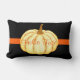 Dieses Kissen aus Baumwolle wird im Herbst im Kürbisdruck mit schwarzer Hintergrundfarbe gezeigt. Orange Akzent Farben Passen Sie dieses Kissen an oder kaufen Sie, wie es ist.