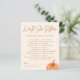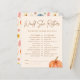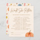 Eine angenehme Ergänzung zu einer Babydusche mit einem charmanten Kürbisthema. Ideal für eine kleine Kürbisdusche, passt dieses Spiel nahtlos in die Herbst-Babydusche-Feiern. Das vielseitige Design ist ideal für geschlechtsneutrale Ansammlungen, sowie für spezielle Duschen für Kleinkinder oder kleine Mädchen. Das Spiel mit orangefarbenen und blauen Kürbismotiven sorgt für eine spielerische und saisonale Touch, die die Gäste mit einer Boho-Kürbis-Babydusche anzieht. Diese ansprechende Aktivität wird die Gäste unterhalten und die festliche Atmosphäre Ihrer Kürbis-Babydusche stärken.