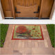 Fallende Blätter Landschaft Mit Monogramm Door Mat. Grün, Gelb, Orange, Rost und Rot blasen die Luft aus den Fernbäumen. Herrliche rustikale Herbstlandschaft und das Gefühl des Herbstes auf einem warnen Steinboden, um Ihre Dekoration für die Ferienzeit zu verbessern. Wunderschön für amerikanische und kanadische Erntedank Ferien.