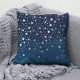 Stilvolles Kissen mit dunkelblauem Himmelshintergrund und abfallenden Silberstern.