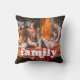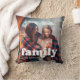 Dieses schlichte und stilvolle Kissen besticht durch zwei Ihrer persönlichen Fotos, das Wort "Familie" in der boho weißen, modernen Typografie und den Nachnamen Ihrer Familie.