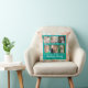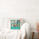 Dieses Kopfkissen mit sechs Foto-Rahmen-Collage ermöglicht es Ihnen, Fotos Ihrer Familie hinzuzufügen. Dieses aquamarine und orangefarbene Kissen ergänzt Ihre Zuhause oder ein einzigartiges Geschenk.