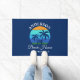 Familienname Beach House Summer Palm Trees Sunset Retro Stil Marine Blue Door Mat. Personalisieren Sie mit Ihrem Familiennamen, Standort und mehr.
