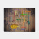 Rustikales, mit Monogramm Dekorgeschenk für Musiker und die personalisierten Musikliebhaber, beunruhigte hölzerne Blickfußmatte hat personalisierte, Familienmonogramm-Wortwolke in den hellen, mehrfarbigen Buchstaben und in vielen Arten. Mit einer GoldMusiknote im Hintergrund. Gegen ein braunes Muster der rustikalen, beunruhigten Scheunenholzplanken. Spaßfamiliengeschenk oder Housewarminggeschenk für die musikalische Familie.