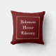 Passen Sie dieses hübsche dunkle Rot mit elegantem, weißem Schrift-Zuhause-Kissen mit dem Namen Ihrer eigenen Familie an. Oder fügen Sie nur einen Vornamen oder einen Nachnamen oder sogar alle neuen Wörter hinzu. Eine elegante und komfortable Möglichkeit, die Position einer Zuhause-Bibliothek, das Lesen von Akten oder das Lesen von Ecke zu etablieren. Diese Zuhause-Bibliothek oder Leseecke Akzent Kissen ist Set mit einem Baumwollgewebe Abdeckung, aber es gibt auch andere Waschmöglichkeiten.