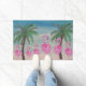 Tropical flamingos and palm trees coastal beach house doormat,floormat rug for indoor or outdoor.