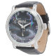 Uhr, Vintage Männeruhr mit schwarzem Lederarmband
