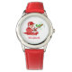 Kinderuhr aus Edelstahl mit rotem Lederarmband