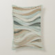 Eine von Hand gezeichnet Abbildung von ruhigen Wellen in Weiß-, Beige- und Hellminztönen. Die metallischen Farben sind sauber und im Hintergrund sind sichtbare Pinselstriche erkennbar. Die sichtbare Textur und Linien sind leicht gewellt.