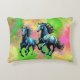 Eine lebendige Darstellung der galoppierenden Pferde. Es zeigt eine dynamische Mischung aus Blues und Gold, die den fließenden Mann hervorhebt. Farbenfroh, grün, gelb, rosa nebelig,