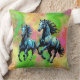 Eine lebendige Darstellung der galoppierenden Pferde. Es zeigt eine dynamische Mischung aus Blues und Gold, die den fließenden Mann hervorhebt. Farbenfroh, grün, gelb, rosa nebelig,
