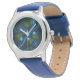 Kinderuhr aus Edelstahl mit blauem Lederarmband