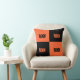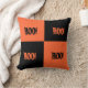 Halloween-Wurfskissen gezeigt in den orange/schwarzen Farbblöcken mit Boo! Text. Fertigen Sie dieses Einzelteil besonders an oder kaufen Sie, wie ist.