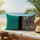 Dieses trendige Kissen aus Lumbalstahl im Freien verfügt über große rechteckige, in aquamarin grün gestrichene Blöcke sowie über einen silbernen und schwarzen Leopardruck, geteilt durch einen schmaleren schwarzen Block in der Mitte.
