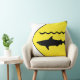 Wurfskissen mit einem gelben Verkehrszeichen mit einer Ikone "des warnenden Haifischs".