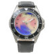 Herrenuhr aus Edelstahl mit schwarzem Lederarmband