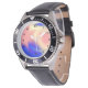 Uhr, Kinderuhr aus Edelstahluhr mit lila Lederarmband