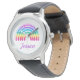 Uhr, Kinderuhr aus Edelstahluhr mit lila Lederarmband