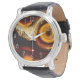 Uhr, Vintage Männeruhr mit schwarzem Lederarmband