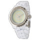 Eine wunderbare Damenuhr mit weißem Armband und grün-weiß-kariertem Ziffernblatt. Trägt sich ganz fabelhaft. Exzellenter Druck, sehr klare Farben. Schönes Design.