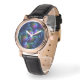 Farbenfrohe Abstrakte blaurosa grünes Fraktal Armbanduhr