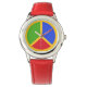Kinderuhr aus Edelstahl mit rotem Lederarmband