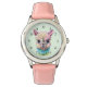 Kinderuhr aus Edelstahl mit rosa Lederarmband